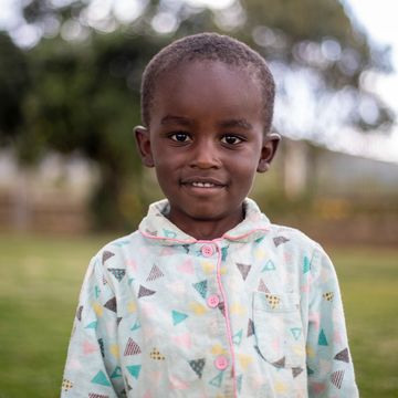 Geofrey never walks - he skips. He has a sunny disposition and a magnetic personality. Playing football and building his own toy cars are two of his favourite pastimes. Geofrey lives with his parents and four siblings. His younger sister, Naomi Wambui, attends school at LEAP Preschool.