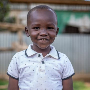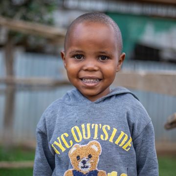 John has a big, bright smile and will greet you with his joyful personality. He enjoys playing with building blocks and stacking towers as tall as him. John lives with both of his parents and four siblings. His sisters, Mary Nyambura and Mary Wanjiku, attend Cornerstone.
